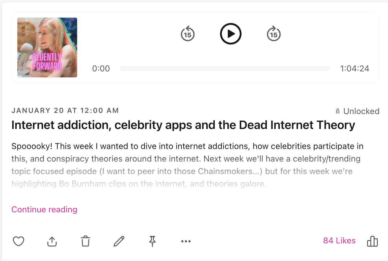 Niching down and growing an audience has allowed me to now be able to talk about things I really do love with people who are interested in the same topics. Aliens in the ocean. Why we pit female celebrities against each other. Sex trafficking and how social media sites don’t do enough to combat this. We get to talk about celebrity gossip on FluentlyForward, but also a host of semi-adjacent topics (okay, the aliens one wasn’t even semi-adjacent, but still).